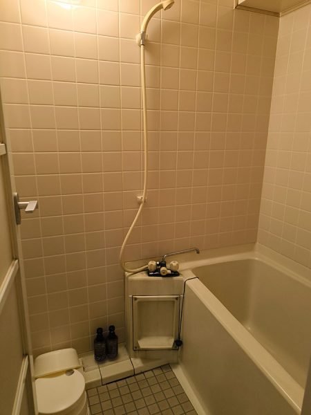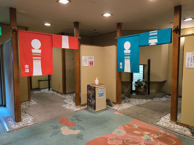 夕食後、徒歩一分のところにある共同浴場「滝の湯」がいいらしいので、フロントで無料チケットをもらって、行ってきました。