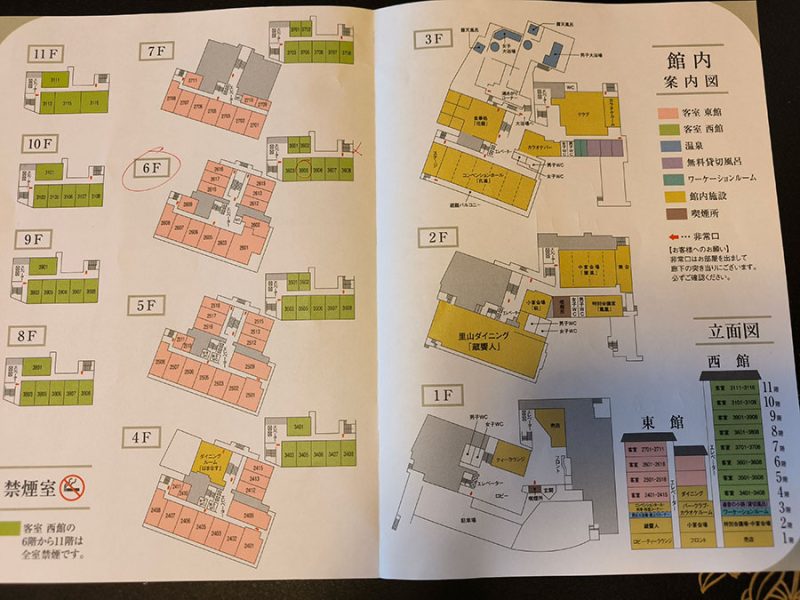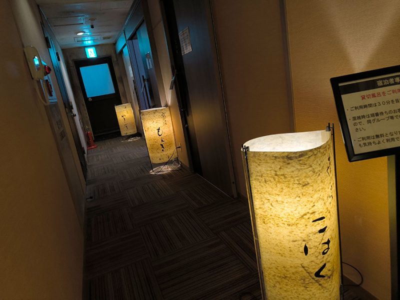 チェックインして、部屋に向かいます。荷物は自分でもっていきます。