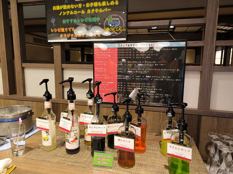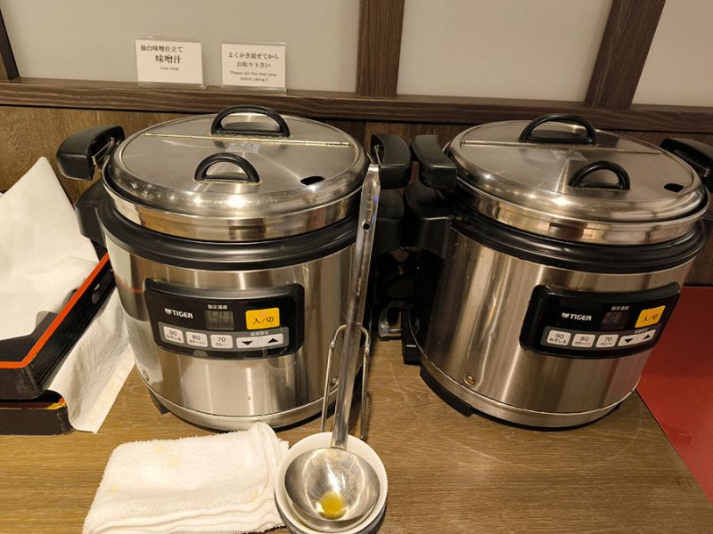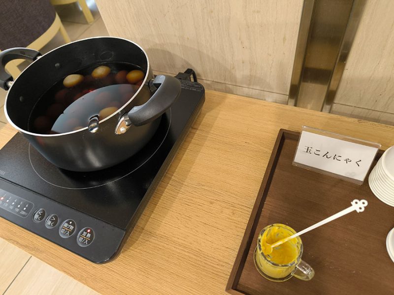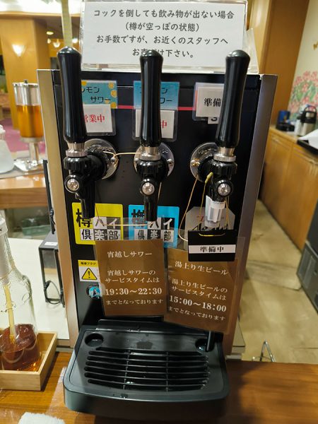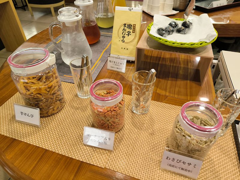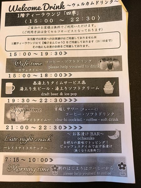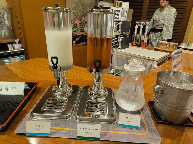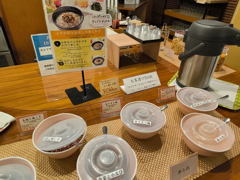 滝の湯を堪能して戻ってきたら、フリードリンクエリアは夜食のお茶漬けが提供されてました。