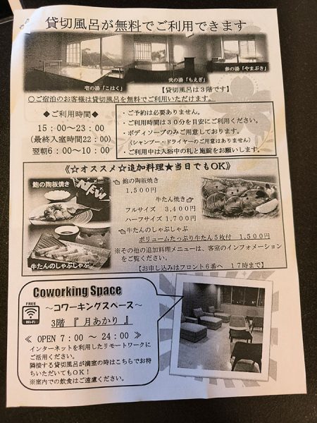 この宿は、貸切風呂があって、空いていれば自由に入ることができます。