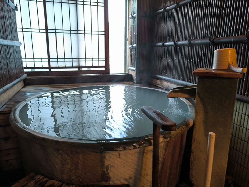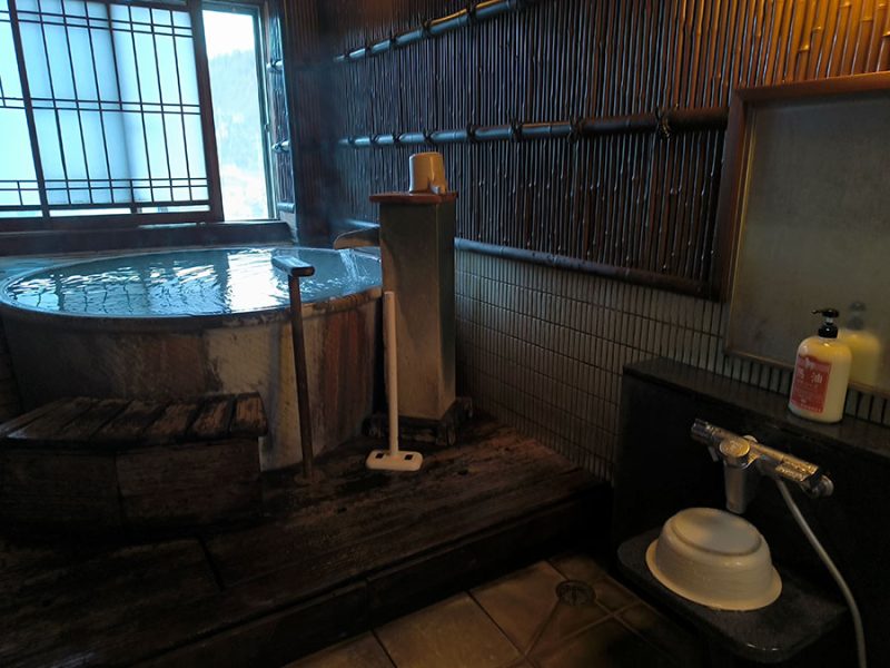 大浴場は循環併用ですが、貸切風呂は掛け流しです。源泉は熱いので、自分で水を入れることができます。