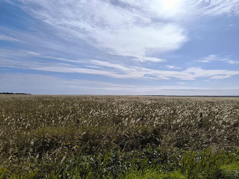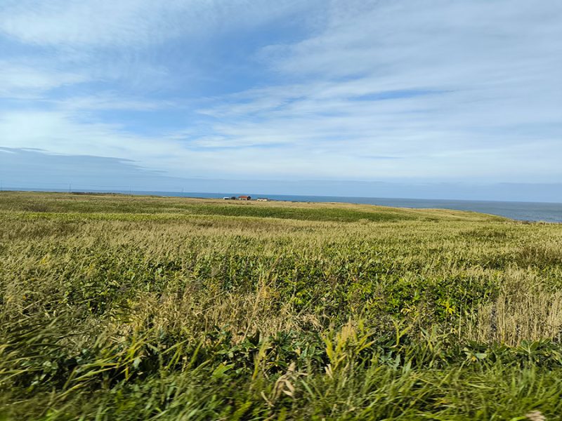 市街地を抜けると、左は海、右は草むらという景色が続くようになります。