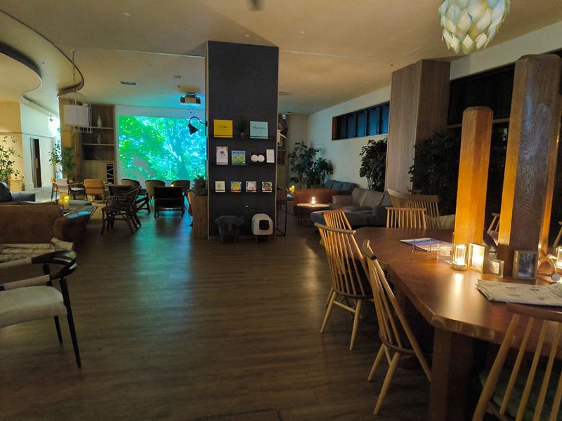 朝風呂を上がって、フリーラウンジにやってきました。