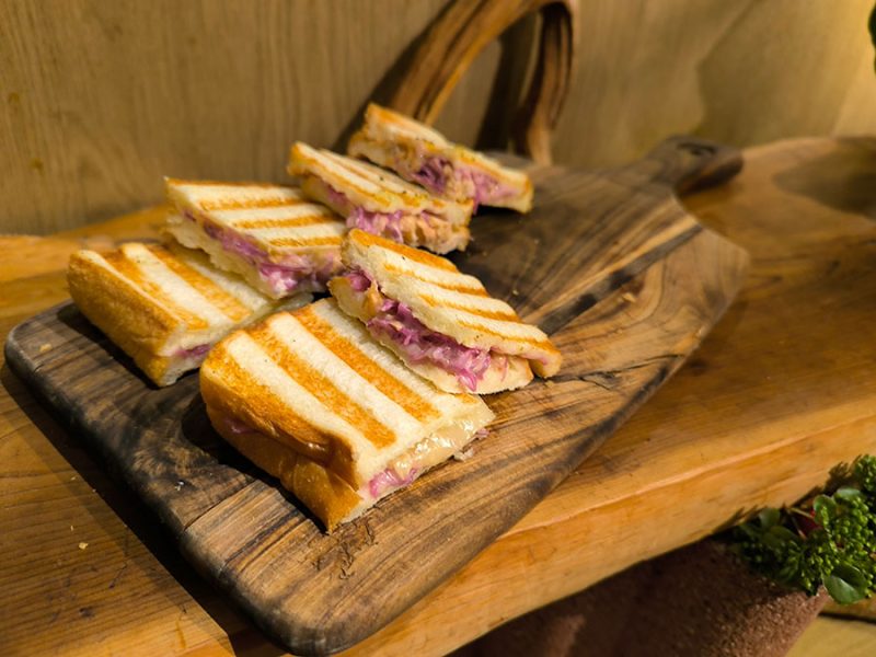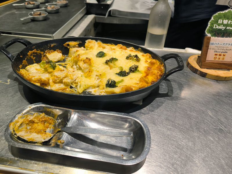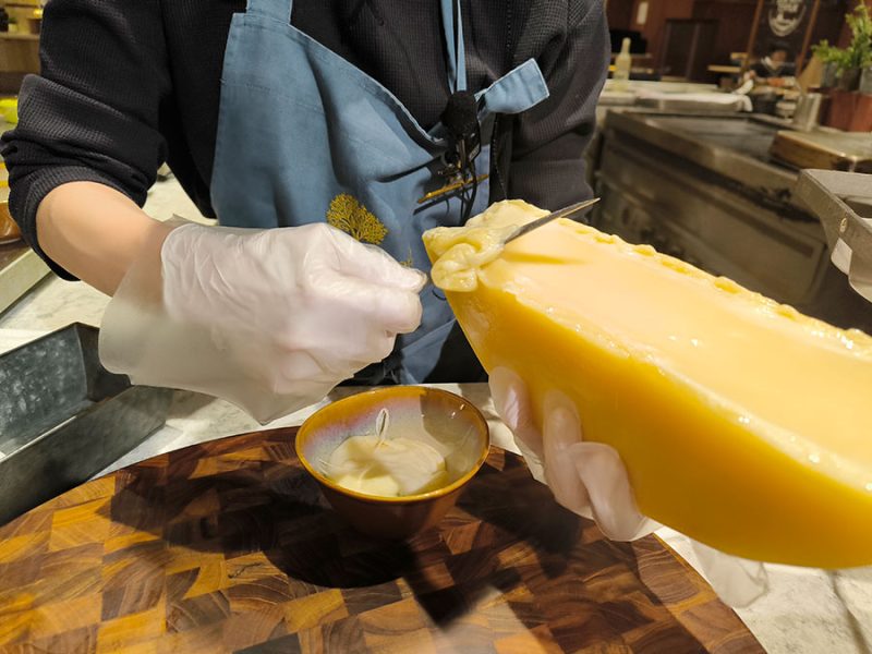 ビュッフェに目移り過ぎて、どれにしよう~と迷い歩いていたら、ラクレットチーズをかけてくれるブースがありました。
