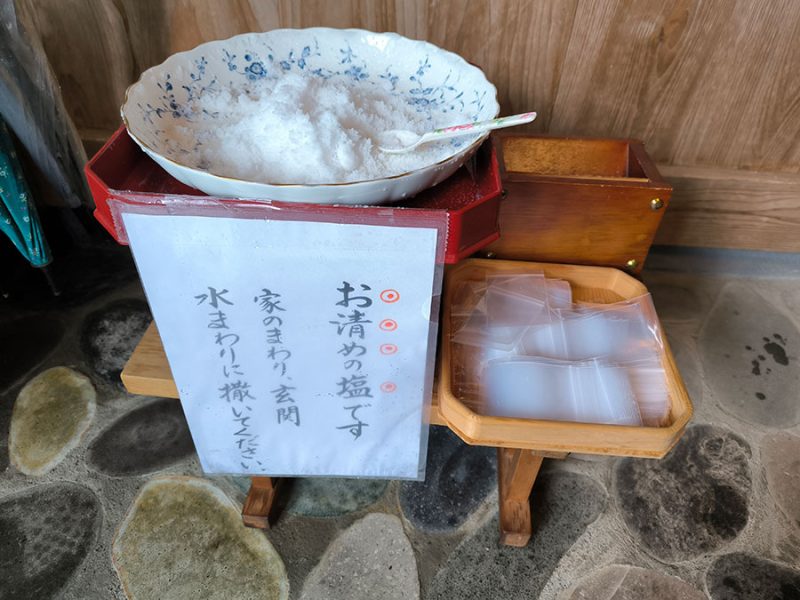 また、その横にはお清めの塩が置かれていて。自由に持ち帰れるようになってました。