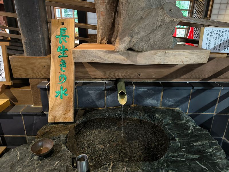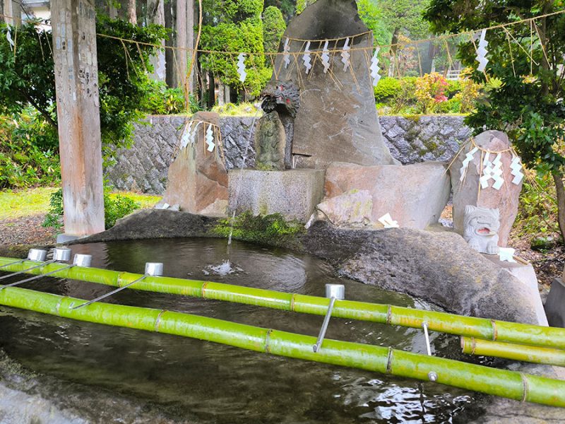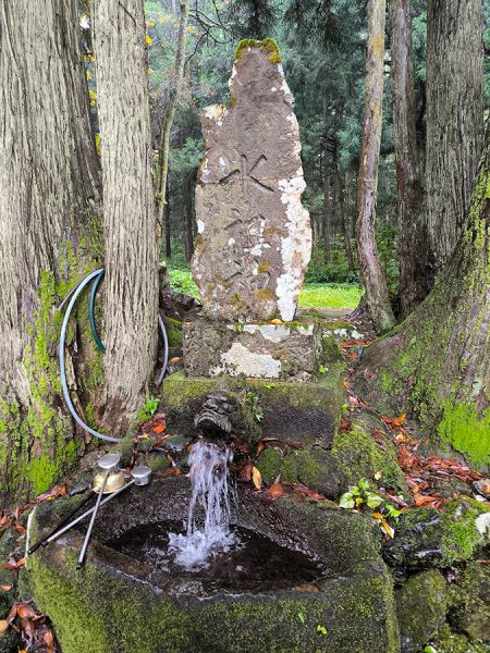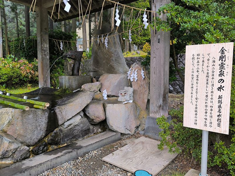 階段の先には大きな手水舎があって、口に含むとほんのり甘い感じがします。さすが魚沼の名水です。