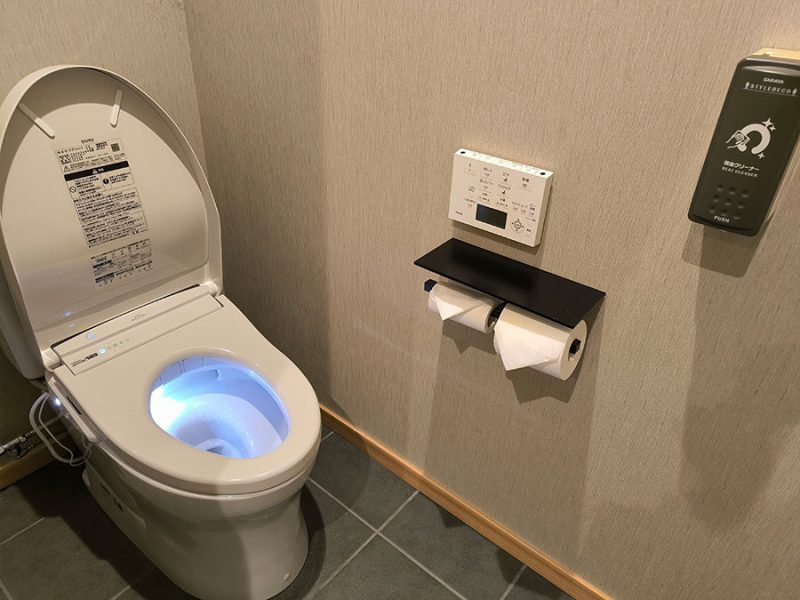 洗面台の他にミニ流しもあるし、トイレに入ると便座のフタはこんにちは!するし(自動でフタが開く)、最新の設備になっています。