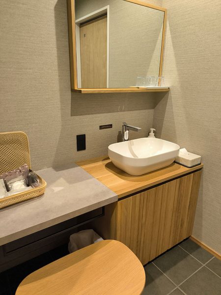 貝掛の部屋はどこもそうですが、こちらもお風呂はついてないです。軽くシャワーが浴びたくなったとしても、歩いて温泉まで行かないといけないのがちょっと面倒かな~。