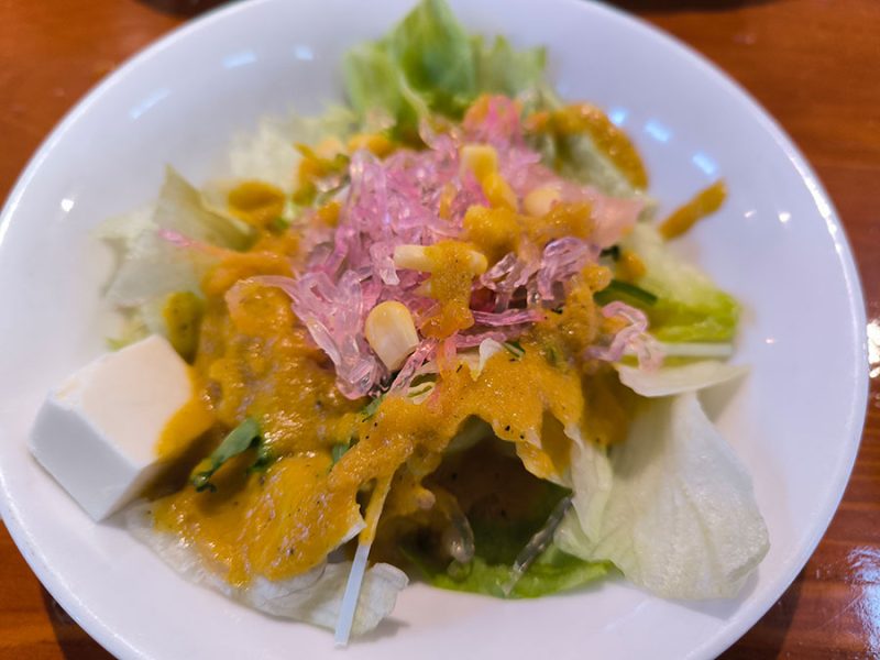 この白い四角いの、豆腐かと思ったら、チーズでした。食べた感じは豆腐みたいなチーズです。見た目は、どう見たって豆腐……w