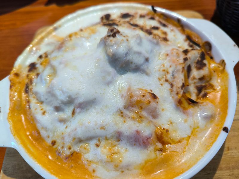 トマトクリームのパスタにホワイトソースがたっぷりかかっていて、とても濃厚。