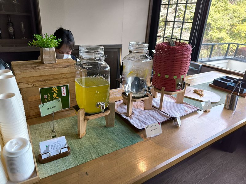 マッサージマシンの後ろには、飲み物も用意されてました。