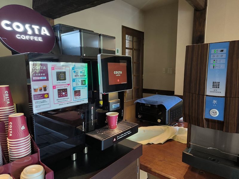 食後は1階のフリーラウンジで、コスタのコーヒーを淹れて部屋に持って帰って少しのんびりしてから、チェックアウト。