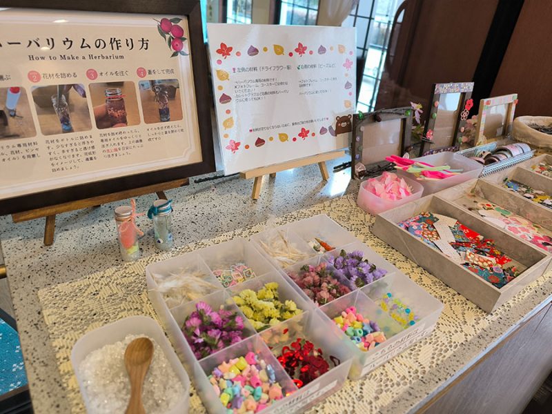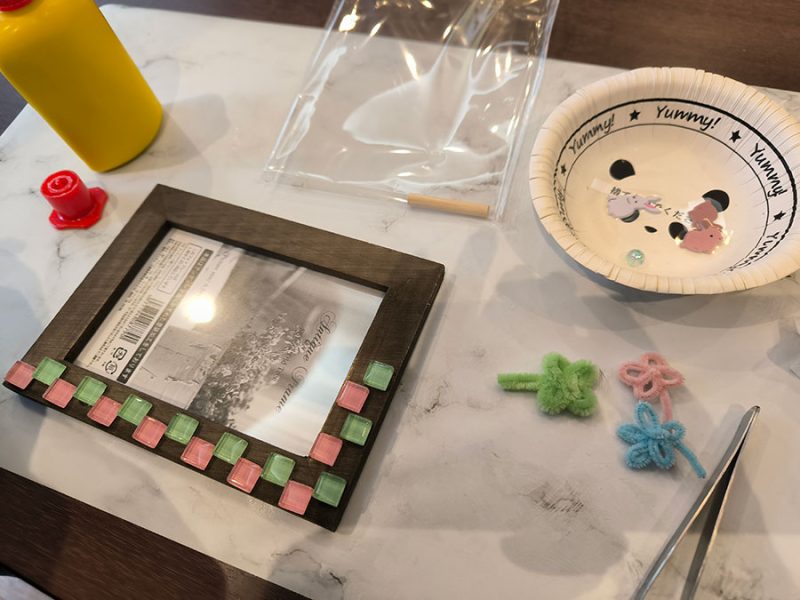 2階のロビーの近くに、クラフト体験コーナーがあって、フォトフレームなど作ることができます。