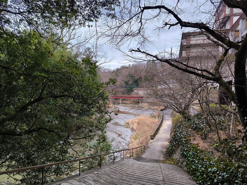 この先の階段を下りていくと、男女別の渓流露天風呂になります。