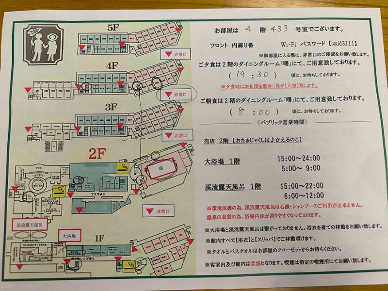 ちなみに、この渓流露天風呂は22時というちょっと早い時間に、一旦閉まってしまいます。