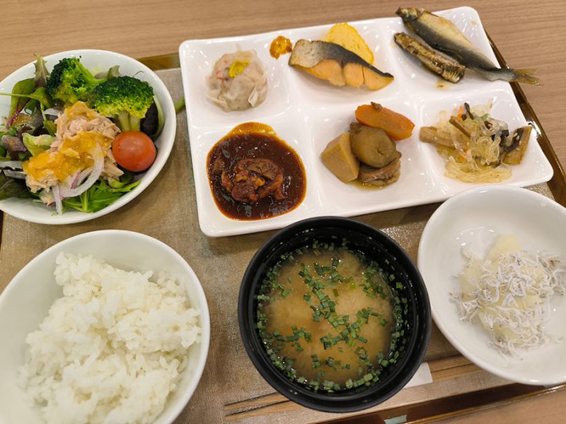 煮魚や茶わん蒸しなどあれこれ取ってきて、いただきます。
